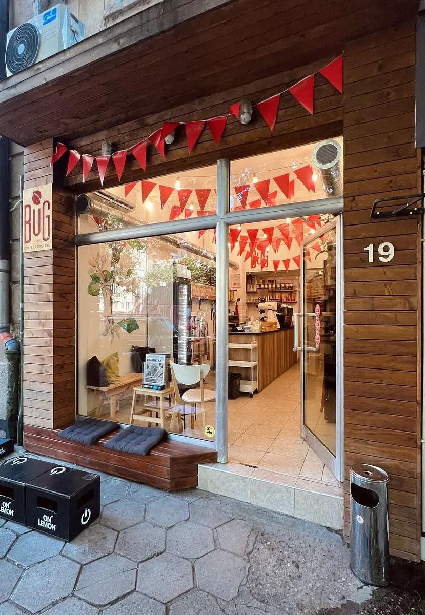 Bug Coffee in Sofia, Bulgaria is a specialty coffee stop on the Caffe Atlas map. Expect espresso, filter coffee, cold brew/drip, decaf coffee. Practical details include free wi-fi, laptop friendly, kids friendly, vegan options.