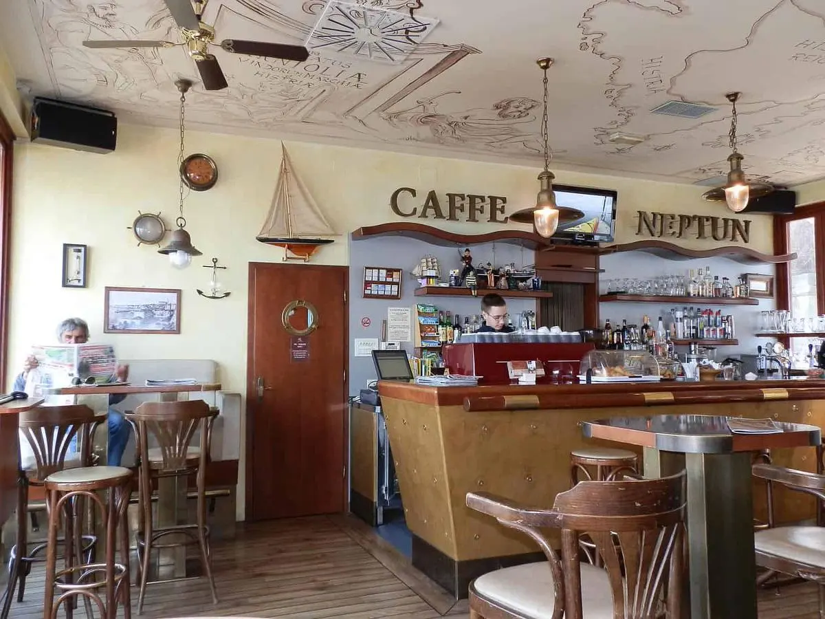 Caffe Neptun in Piran, Slovenia is a specialty coffee stop on the Caffe Atlas map. Expect espresso, filter coffee, cold brew/drip, decaf coffee. Food options include breakfast. Practical details include free wi-fi, laptop friendly, vegan options, outdoor seating.