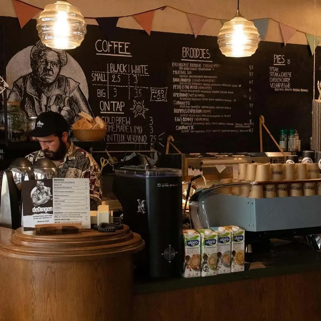 deDingen in Kortrijk, Belgium is a specialty coffee stop on the Caffe Atlas map. Expect espresso, filter coffee, cold brew/drip, plant-based milk. Food options include breakfast, lunch. Practical details include free wi-fi, laptop friendly, kids friendly, vegan options.