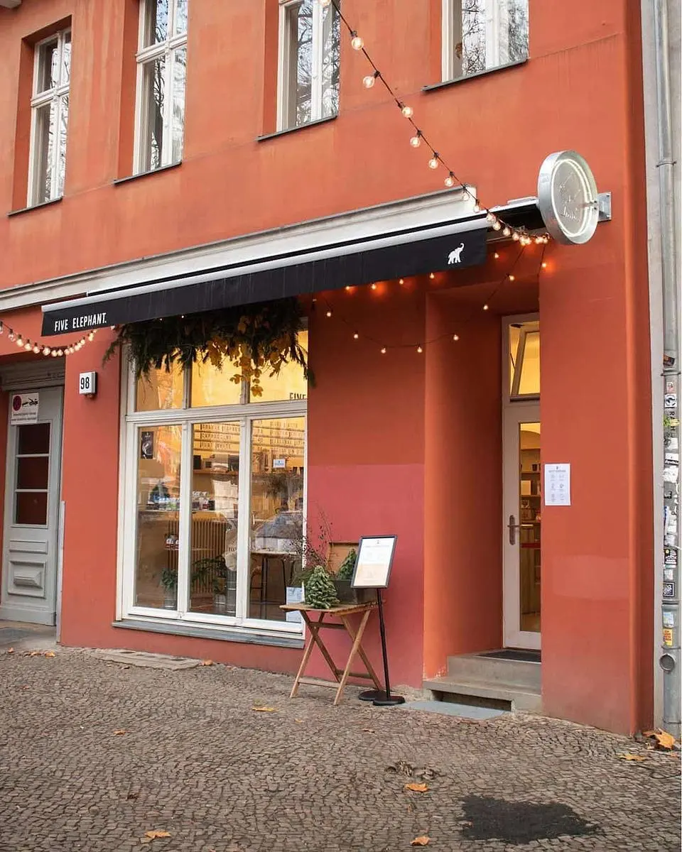 Five Elephant Kollwitz in Berlin, Germany is a specialty coffee stop on the Caffe Atlas map. Expect espresso, filter coffee, cold brew/drip, decaf coffee. Practical details include laptop friendly, kids friendly, vegan options, dog friendly.