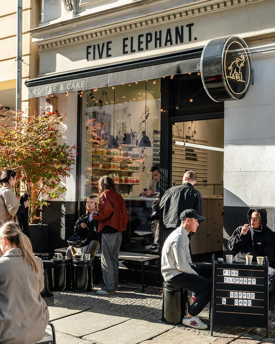 Five Elephant Mitte in Berlin, Germany is a specialty coffee stop on the Caffe Atlas map. Expect espresso, filter coffee, cold brew/drip, decaf coffee. Practical details include vegan options, dog friendly, outdoor seating, accept credit cards.