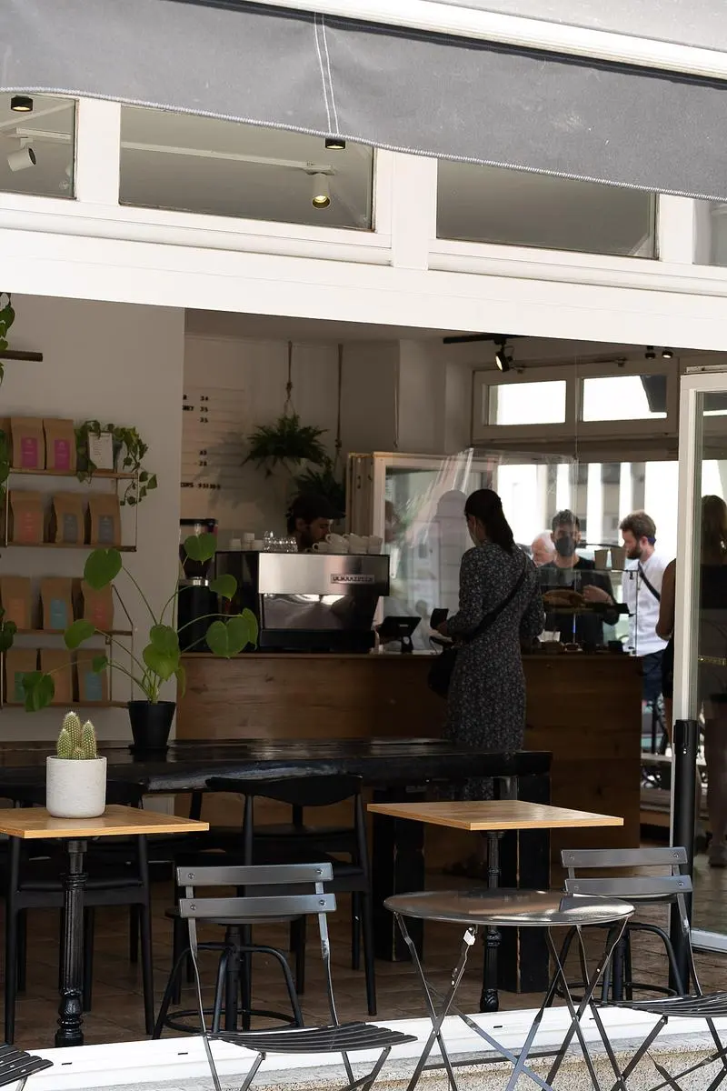 We serve espresso and filter from Symple Coffee Roasters. You can buy beans for home too. We bake all our sweet treats in house and we offer a curated selection of natural wines to enjoy day time drinking together with a small savory snack menu.