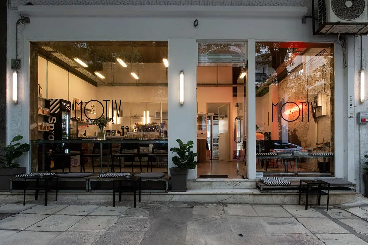 Motiv Pagrati in Athens, Greece is a specialty coffee stop on the Caffe Atlas map. Expect espresso, filter coffee, cold brew/drip, decaf coffee. Practical details include free wi-fi, laptop friendly, kids friendly, vegan options.